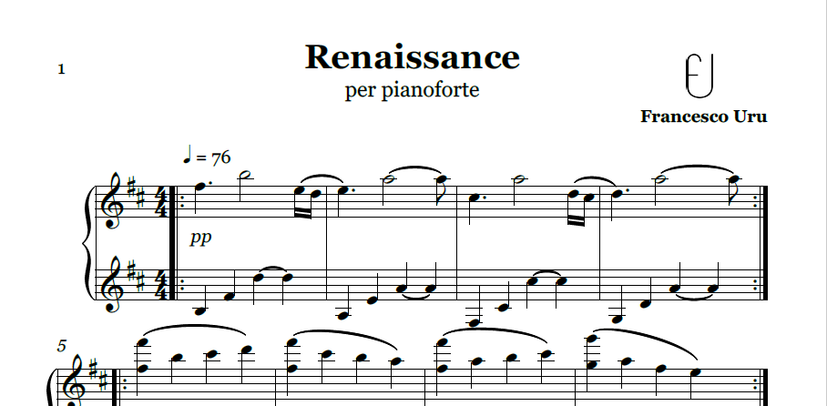 Renaissance (Francesco Uru) - Original Piano Sheet Music (PDF)